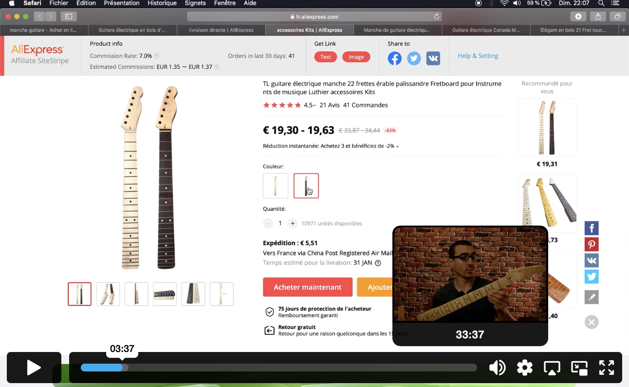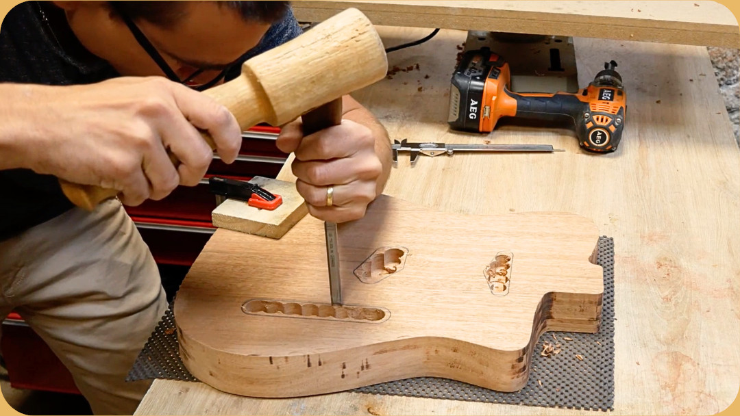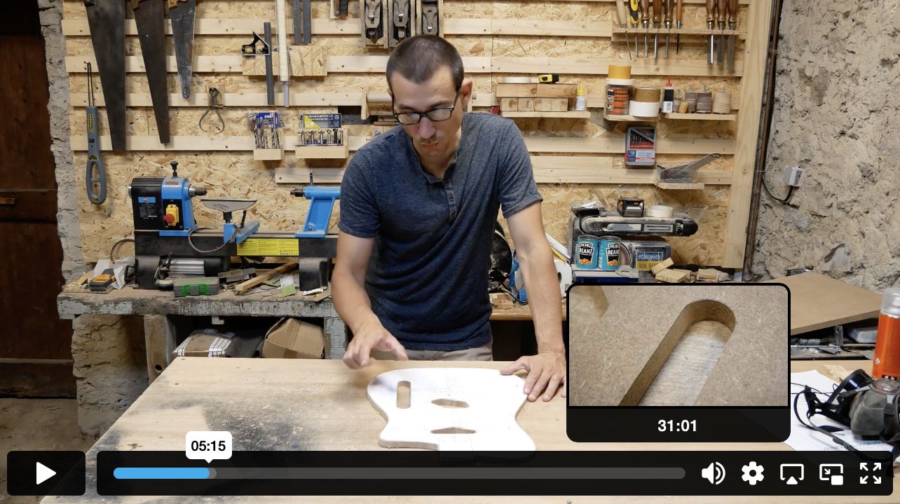 Une formation excellente qui permet aux débutants de construire un corps étape par étape et qui donne aussi de très bonnes astuces pour ceux aillant déjà construit quelques guitares. Pour la guitare sur la photo, je me suis surtout basé sur ta chaine Youtube.