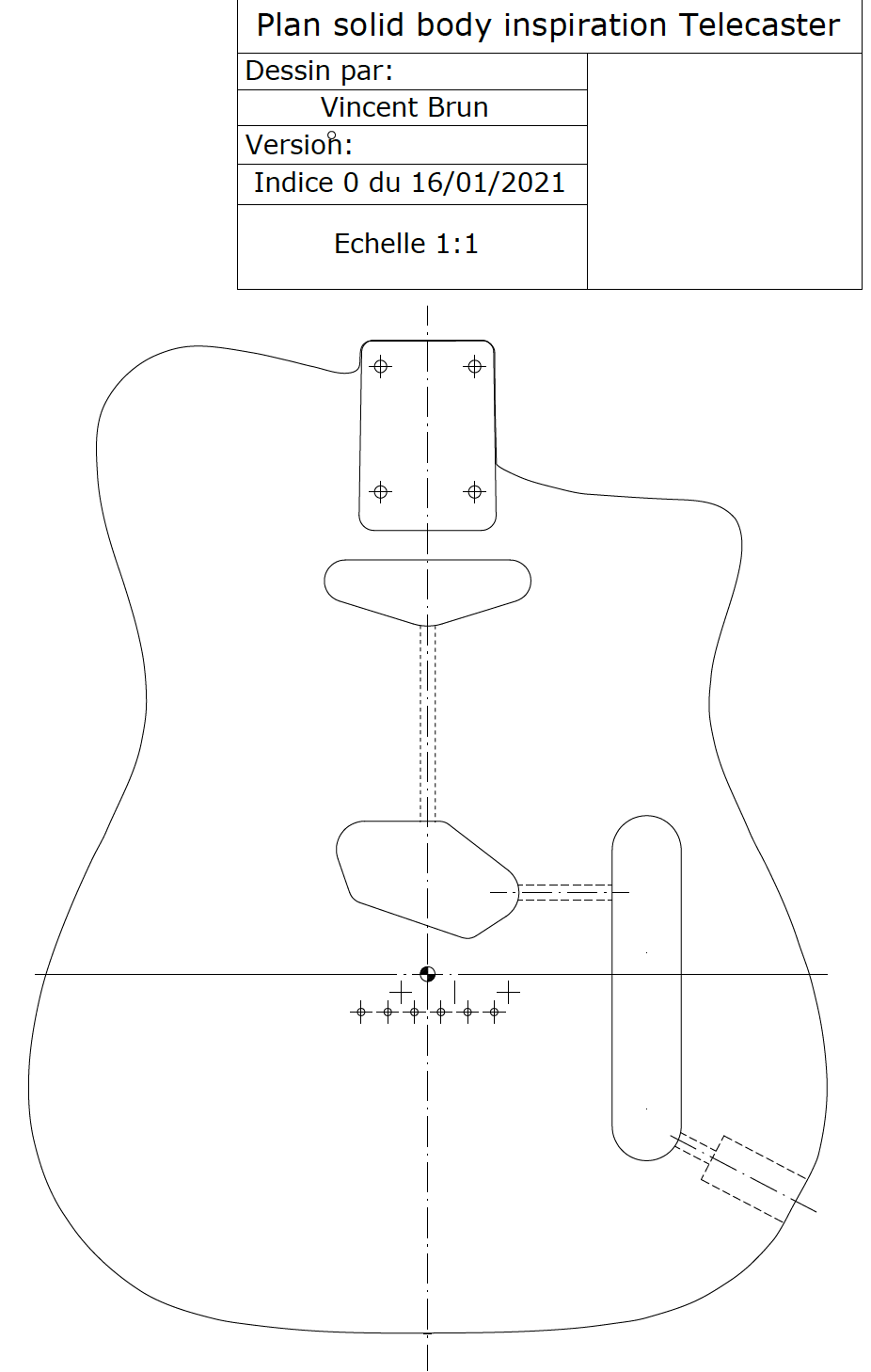 La guitare avance bien. J’ai fini les contours du corps , et les cavités micros.